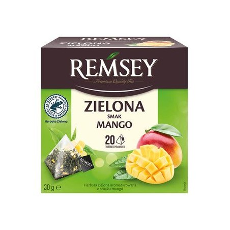 Herbata zielona Remsey smak Mango, 20 torebek.