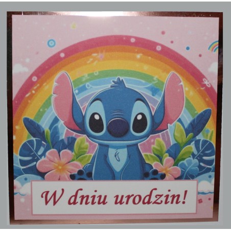 Kartka na urodziny dla dzieci tęczowa Lilo i Stitch Sticz + różowa koperta