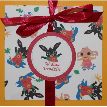 Kartka na urodziny dla dzieci królik Bing króliczek zajączek żółta