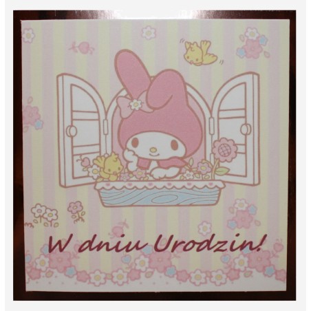 Kartka na urodziny dla dzieci różowa my melody błyszcząca ramka + różowa koperta