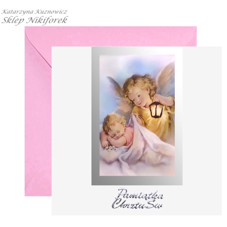 • Kartka na Chrzest Święty srebrna z aniołkiem