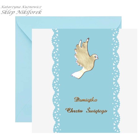 • Kartka na Chrzest Święty błękitna ze złotym gołąbkiem