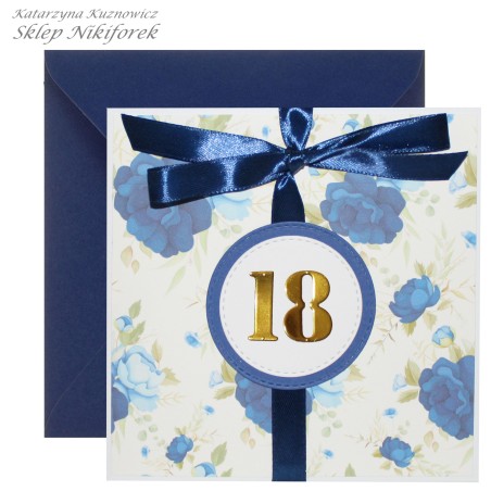 • Kartka na 18 urodziny granatowa w kwiaty niebieskie róże