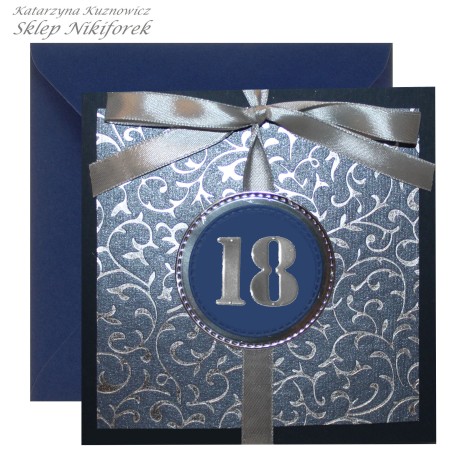 Kartka na 18 urodziny osiemnastkę granatowa srebrna elegancka