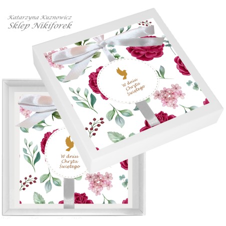 Kartka w białym pudełku na Chrzest Święty w Bordowe Róże.
