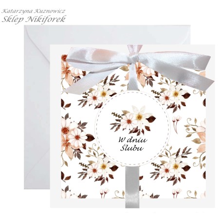 Kartka na ślub w białe kwiaty stokrotki margaretki biała ręcznie robiona